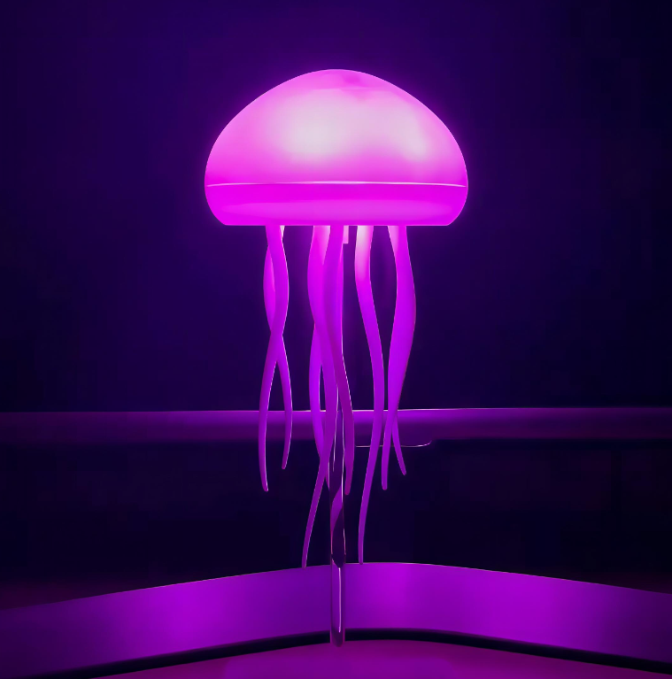 Transform your space into a serene ocean escape with the Jellyfish Mood Lamp. Realistic jellyfish gently float in soothing multicolor LED light. Perfect for bedrooms, offices, or as a unique gift idea. USB rechargeable and ready to brighten your moments of relaxation ✨