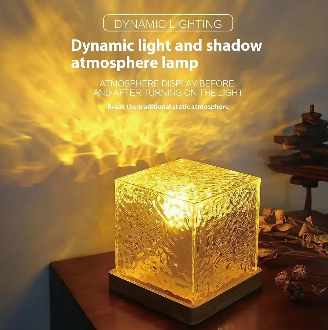 Create a peaceful and modern atmosphere in any room with the Wave-Effect Cube Lamp, a stunning LED ambient light that brings the beauty of soft, moving water reflections into your home. Its hypnotic wave-light effect transforms your space into a calm and relaxing sanctuary, ideal for bedrooms, living rooms, offices, or meditation areas.